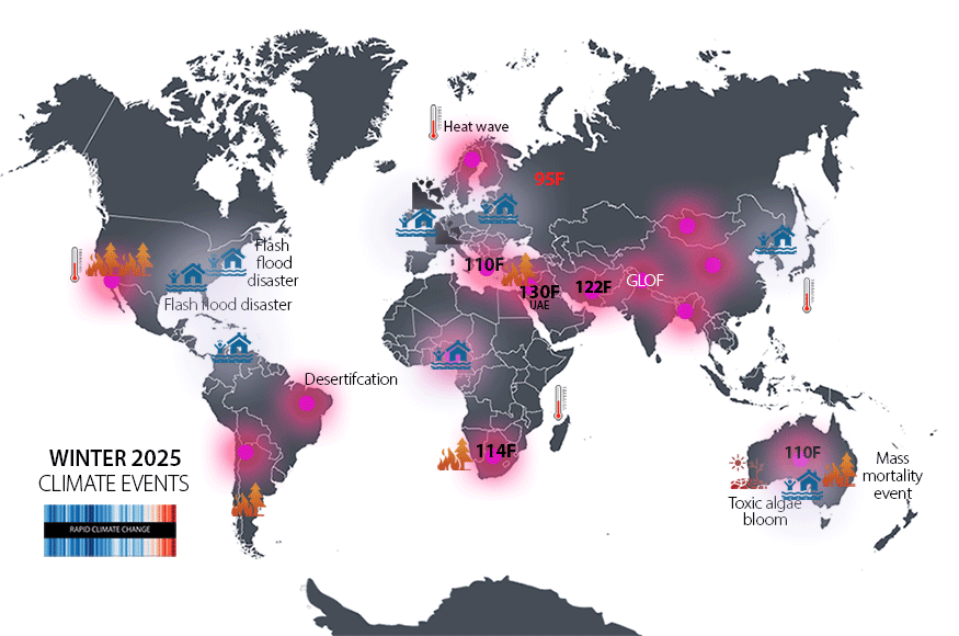 The Earth’s Energy Imbalance (EEI) has doubled in recent decades. In early 2023, the rate of solar energy absorption was equivalent to every person alive on Earth continuously boiling 60 kettles. Since 1971, the Earth has accumulated 500 times more energy than the world’s total primary energy consumption in 2024. 93% of this heat is currently being stored in the oceans, a thermal debt that will eventually be paid.